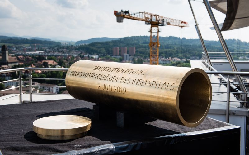 Mit einer würdigen Feier wurde am 2. Juli 2019 der Grundstein für das neue Hauptgebäude des Inselspitals gelegt. Dieses stellt einen weiteren Meilenstein des «Masterplans Inselcampus» und der 2015 vom Berner Stimmvolk mit grosser Mehrheit angenommenen «Überbauungsordnung Insel Areal III» dar. Damit soll das Insel-Areal bis 2030 modernisiert und harmonisiert werden. Der Neubau wird ab 2023 unter anderem das Bettenhochhaus ersetzen und so das neue Herzstück des Inselcampus darstellen. Direktionspräsident Uwe E. Jocham hob das Kerngeschäft der Insel Gruppe hervor: «Wir sorgen dafür, dass die Bevölkerung die bestmögliche medizinische Versorgung erhält, betreiben wegweisende Forschung und Lehre und fördern medizinische Innovationen. Dazu sind moderne Infrastrukturen und effiziente Prozesse notwendig, wie wir sie mit dem neuen Gebäude schaffen»*. Regierungsrat Pierre Alain Schnegg unterstrich die Bedeutung des Neubaus für die Gesamtstrategie des Medizinalstandorts Bern: «Dies ist ein Leuchtturmprojekt mit Strahlkraft über die Kantonsgrenzen hinaus. Nur mit zukunftsweisender Infrastruktur kann eine qualitativ hochstehende und gleichzeitig kosteneffiziente medizinische Versorgung sichergestellt werden».